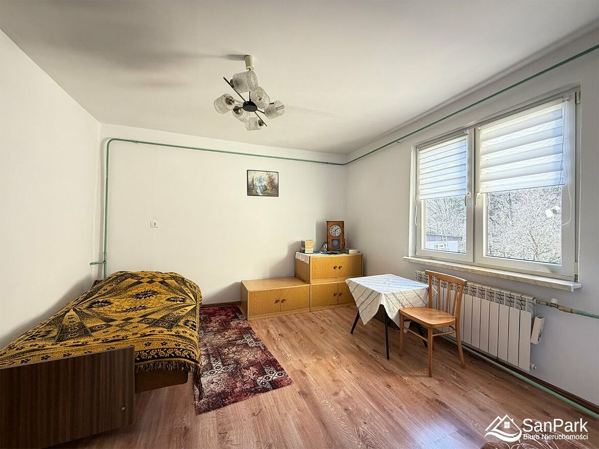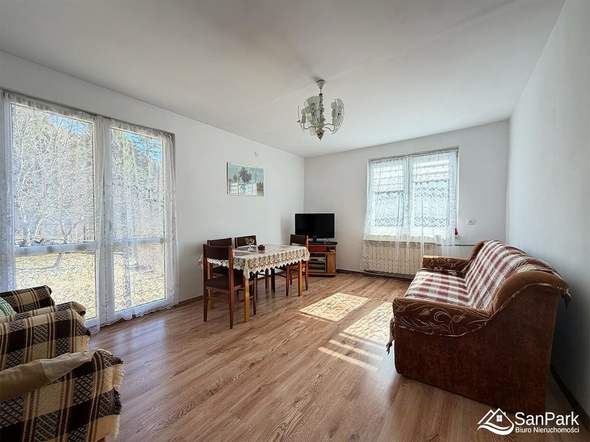 Na sprzedaż dom wolnostojący o powierzchni 62 m², położony w malowniczej miejscowości Cisna- Żubracze, na kameralnym osiedlu domów jednorodzinnych. Nieruchomość usytuowana jest tuż nad rzeką Solinką, w otoczeniu ciszy, lasów i pięknej bieszczadzkiej przyrody. To idealne miejsce zarówno do zamieszkania na stałe, jak i jako doskonała inwestycja pod wynajem turystyczny lub agroturystykę. Dom posadowiony jest na działce o powierzchni 5,52 ara. Budynek ma konstrukcję drewnianą i jest częściowo podpiwniczony.W ostatnim czasie wykonano gruntowne prace remontowe: wymieniono dach na nową blachę trapezową, wykonano nową elewację wraz z ociepleniem budynku oraz zamontowano nowe plastikowe okna. Odświeżone zostały również wnętrza pokoi - wymieniono panele podłogowe, wyrównano oraz pomalowano ściany i sufity. Łazienka do remontu, instalacja elektryczna miedziana. Wykonany nowy przyłącz energetyczny. Dom wyposażony jest w centralne ogrzewanie z piecem na paliwo stałe oraz aluminiowe kaloryfery. Na działce znajduje się drewniany budynek gospodarczy, który można zaadaptować na garaż. Teren działki jest lekko pochyły, a jej regularny kształt daje duże możliwości aranżacyjne.