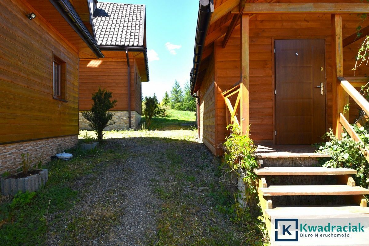 - 5 drewnianych domków: 2 małych - 35m2 i 3 dużych - 50m2 wybudowanych w 2021 r. 1 dom ma status mieszkalnego natomiast 4 pozostałe są rekreacyjne. Domki komfortowo wyposażone. Na domek składa się: salon z aneksem kuchennym, 2 sypialnie , 2 łazienki, balkon, mały taras oraz grilla.