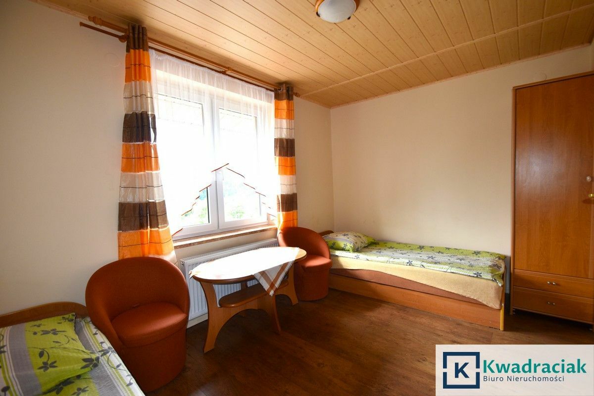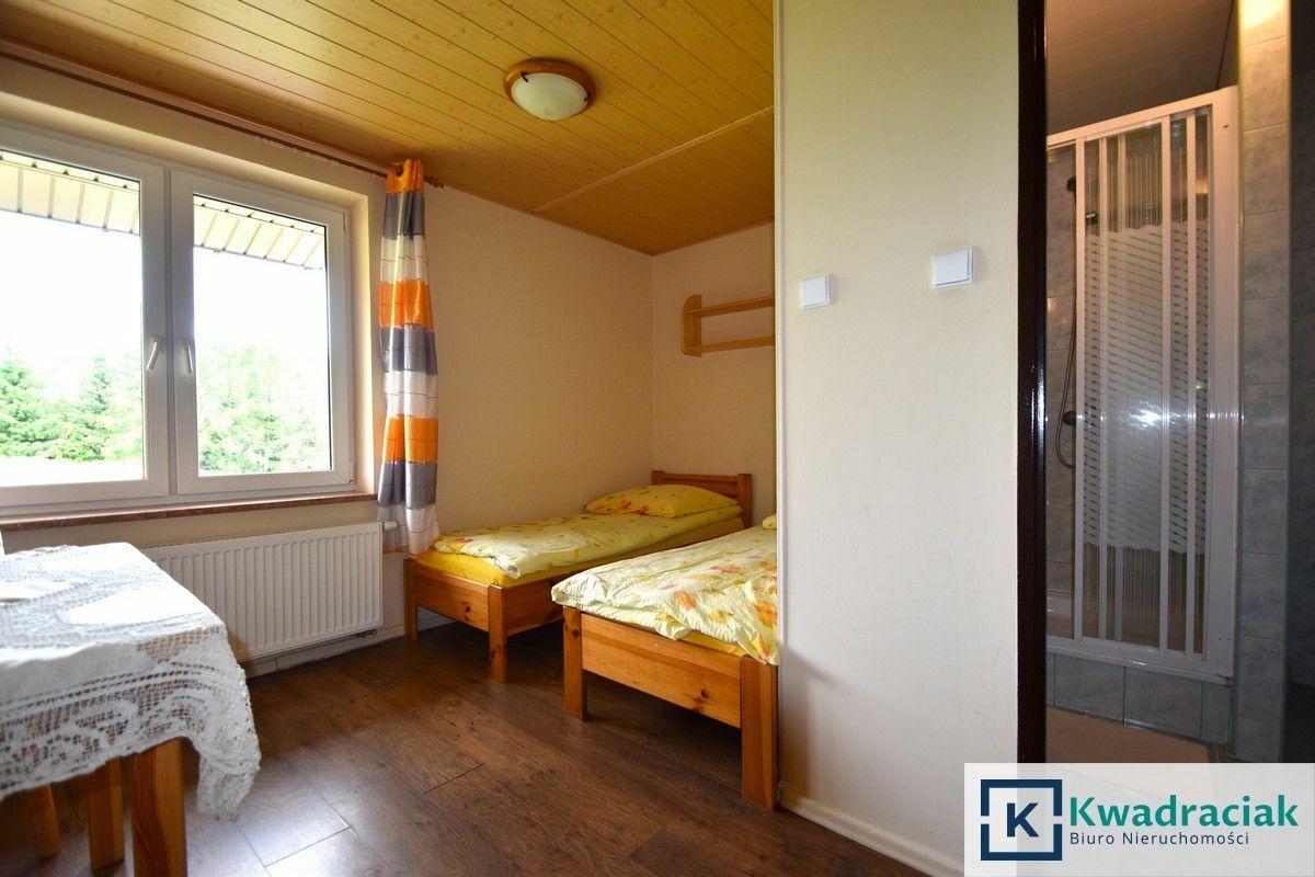 Dodatkowym atutem jest możliwość dokupienia w pobliżu działki (nr 162/11), na którą wydane są już warunki zabudowy na 2 budynki: mieszkalny i rekreacyjny. Pensjonat i domki to łącznie aż 55 miejsc noclegowych. Całość sprzedawana jest z pełnym wyposażeniem, gotowa do kontynuacji już jako świetnie prosperujący biznes lub jako wspaniała okazja inwestycyjna.